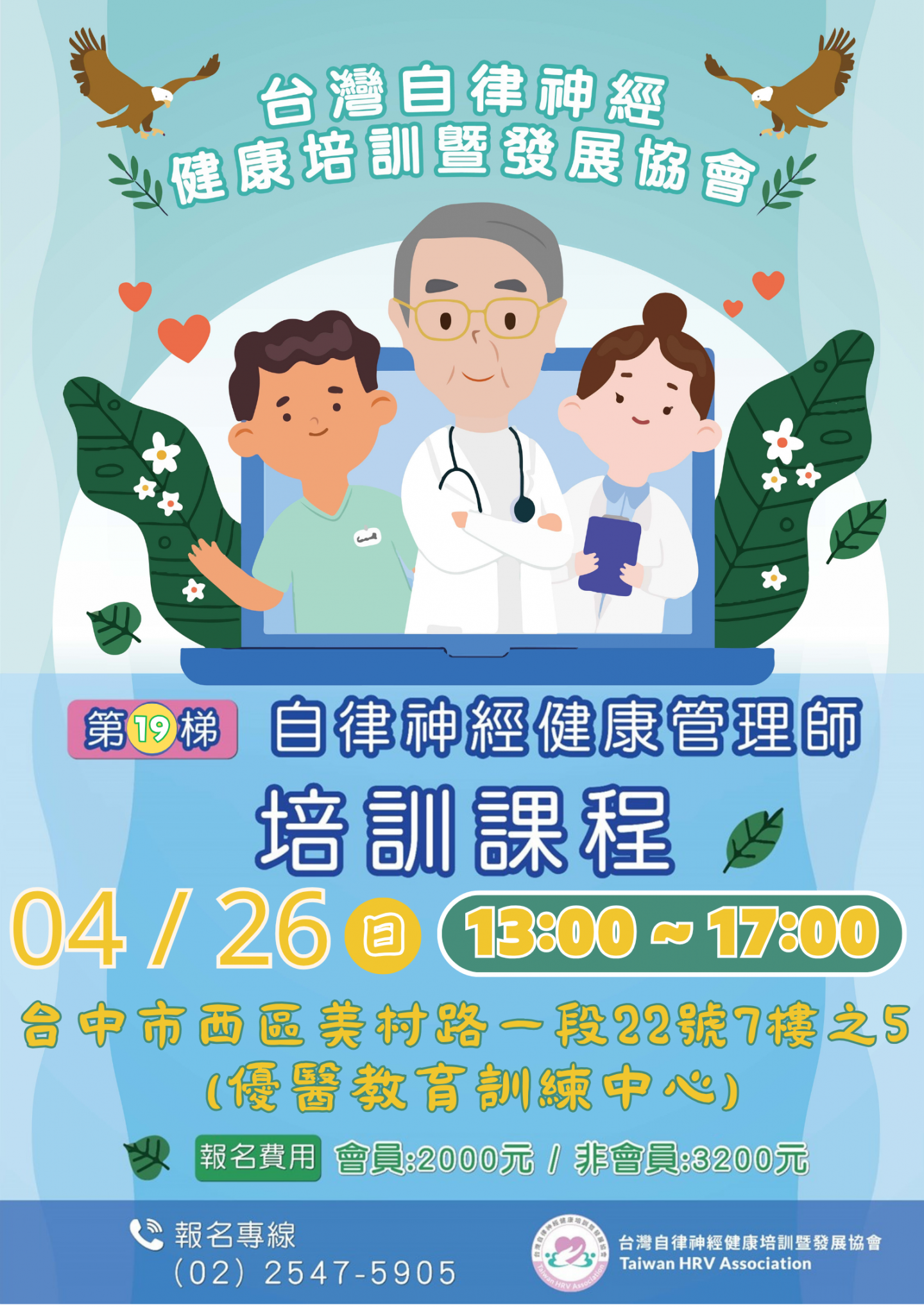 - 課程名稱: 【第十九梯】自律神經健康管理師培訓課程(台中場)