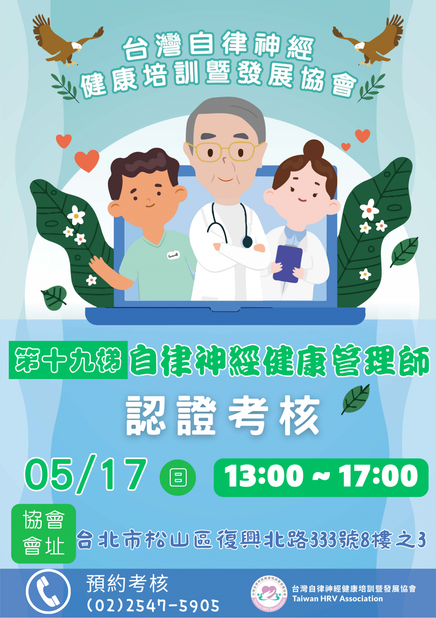 - 考核地點: 協會會址 (台北市松山區復興北路333號8樓之3)