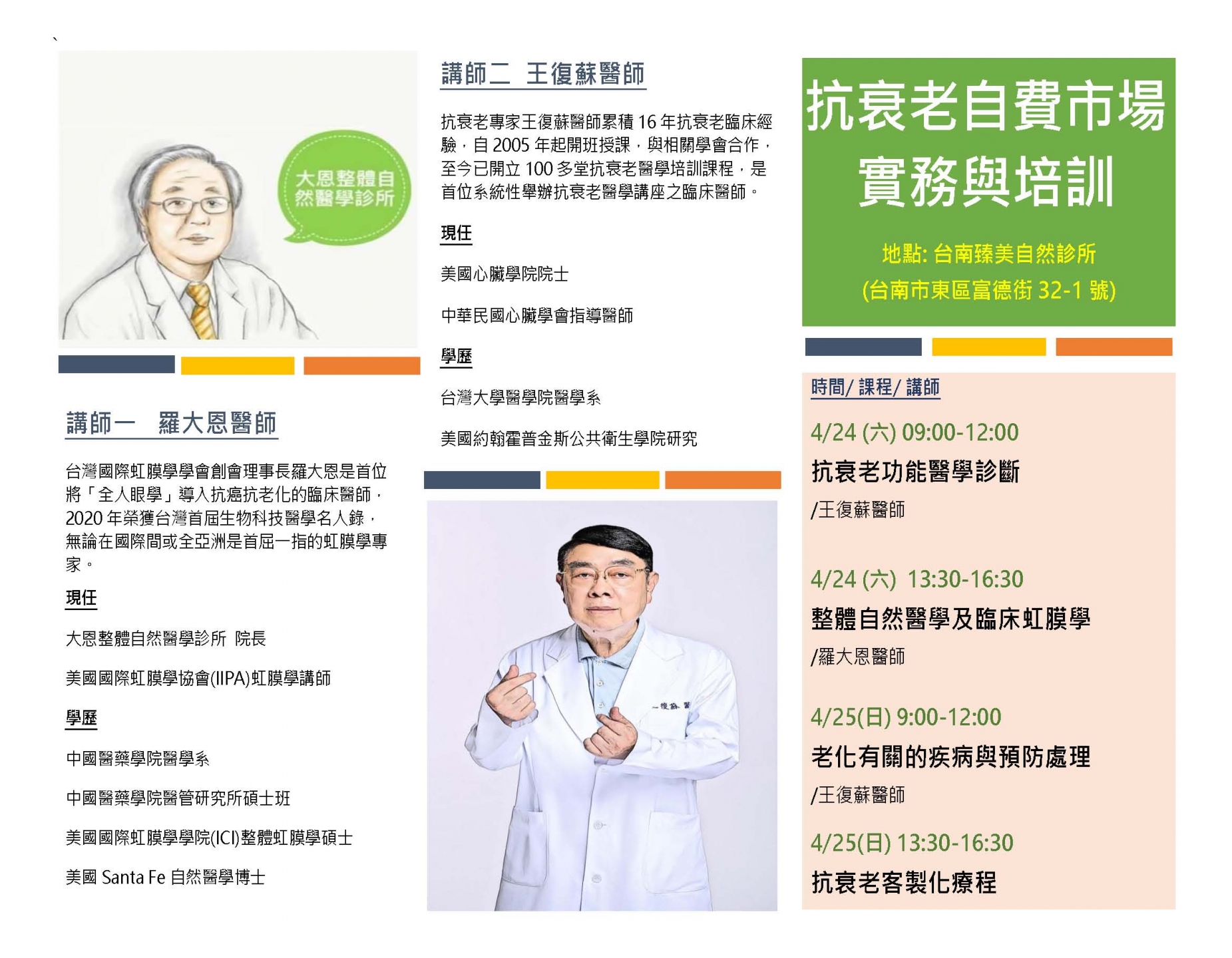 抗衰老專家王復蘇醫師舉辦抗衰老培訓課程(台南場)