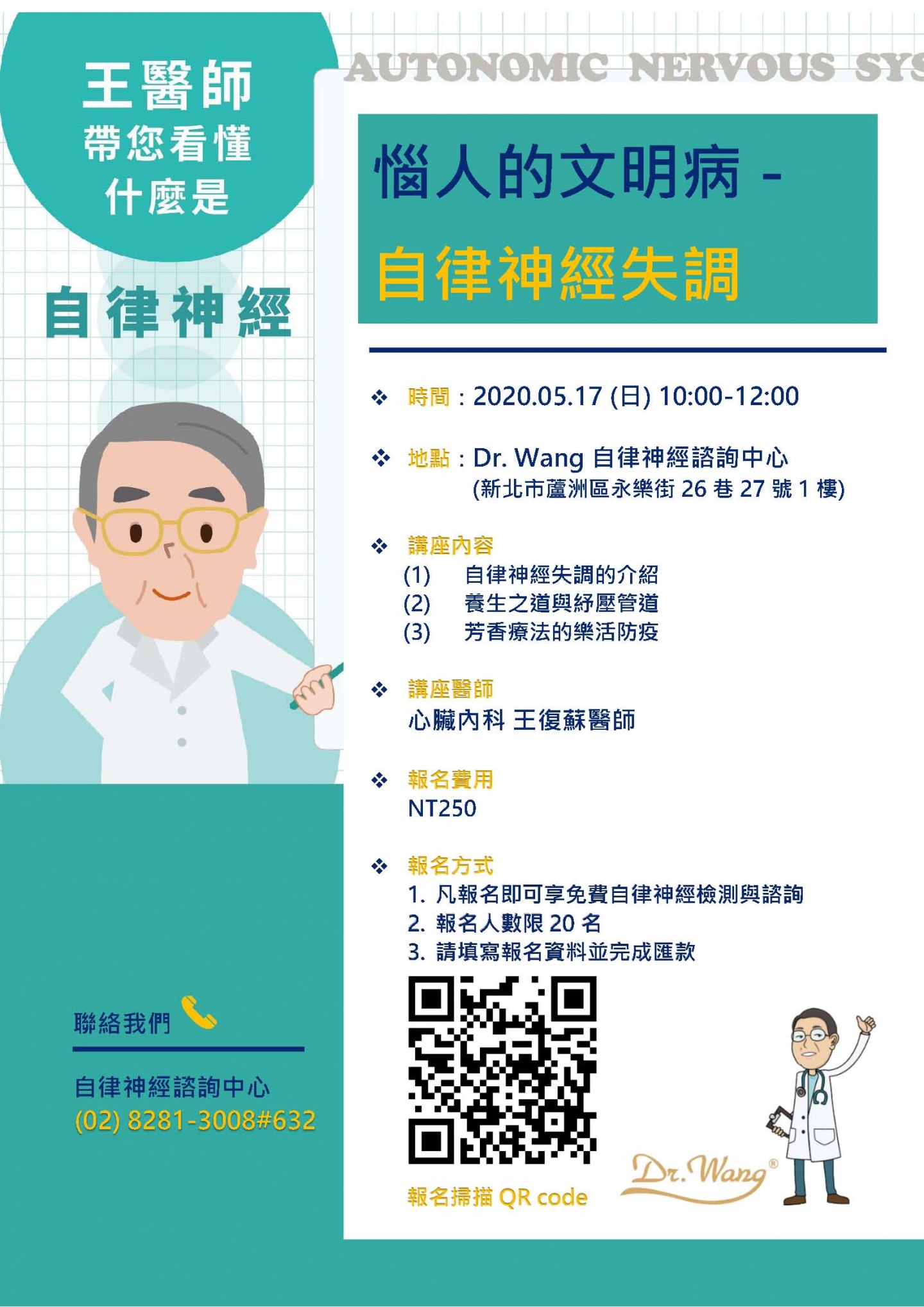 講座地點: Dr. Wang 自律神經諮詢中心 (新北市蘆洲區永樂街26巷27號1樓)