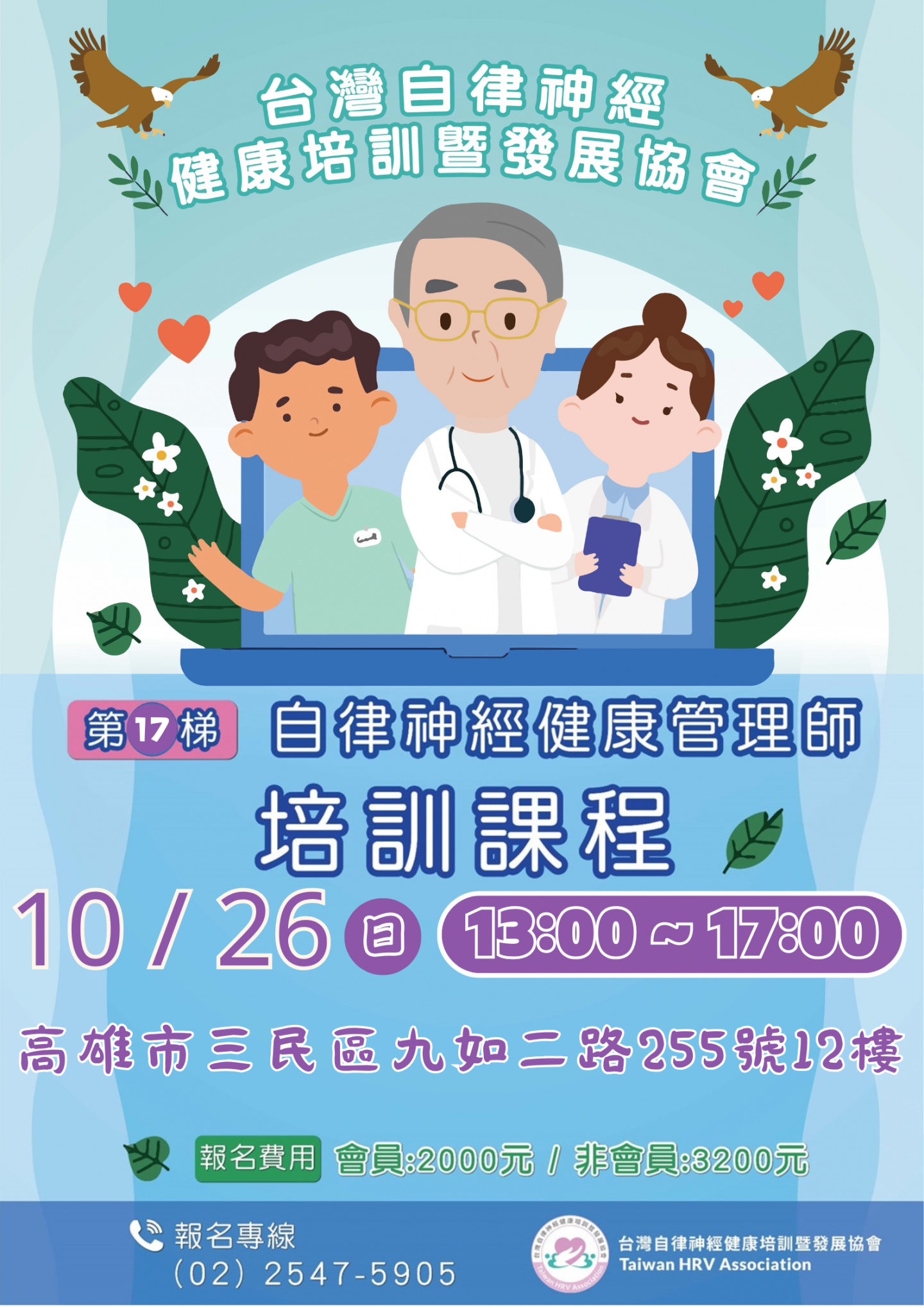 - 課程名稱: 【第十七梯】自律神經健康管理師培訓課程